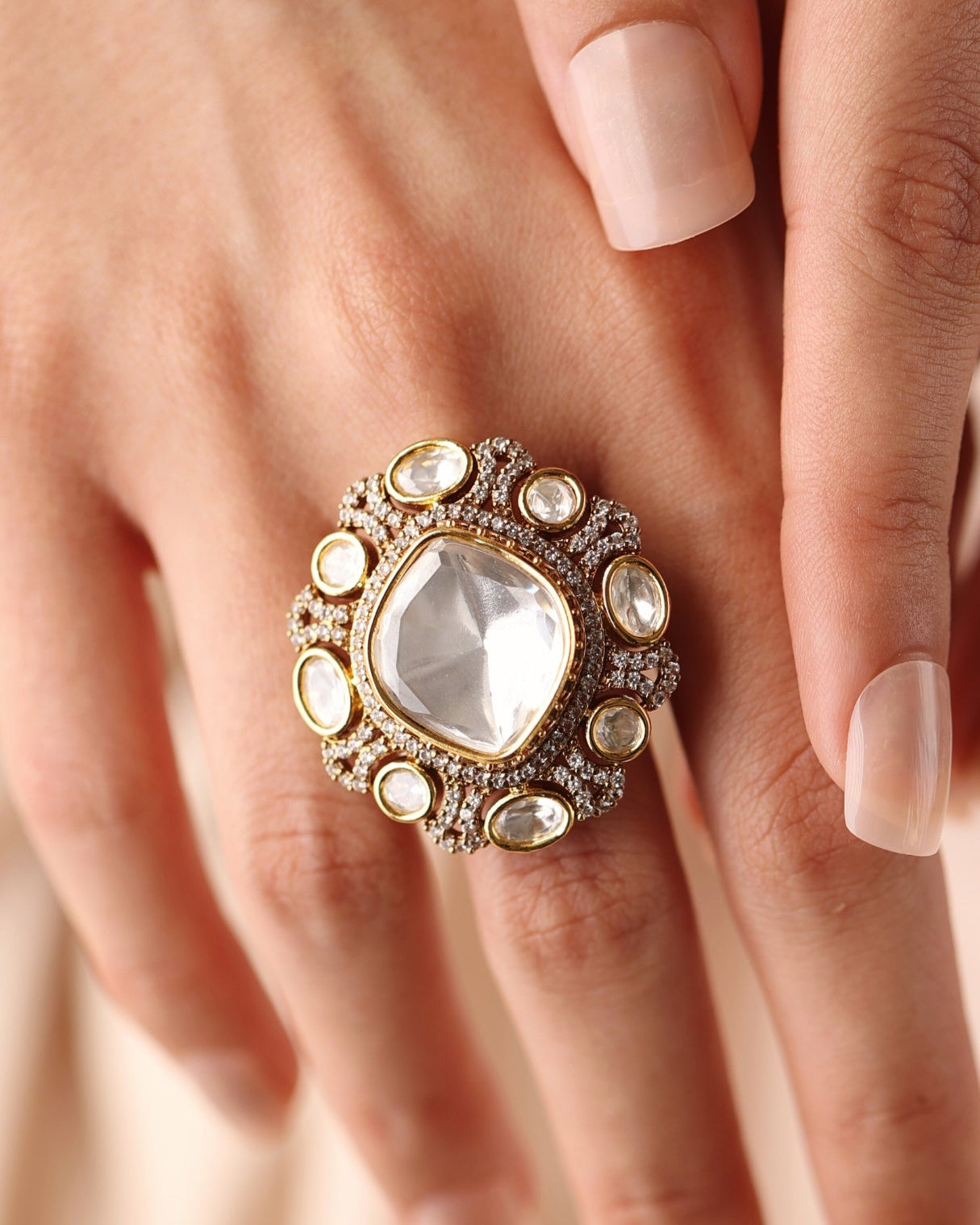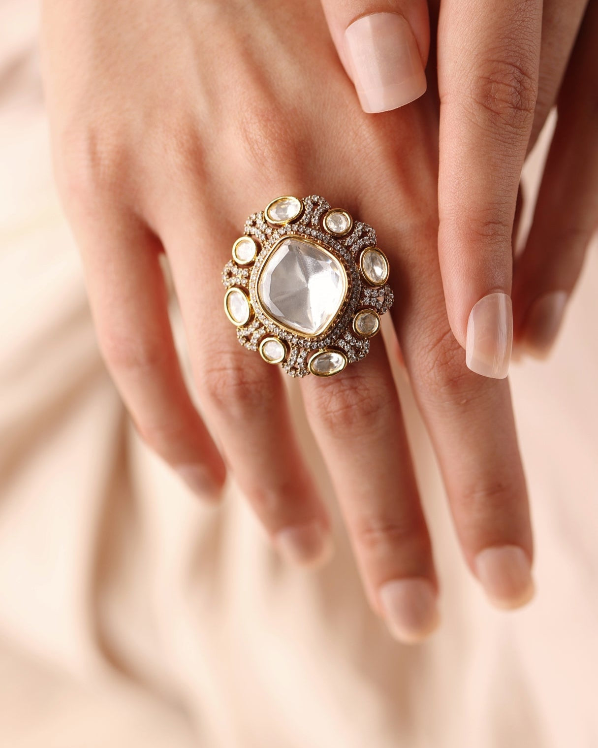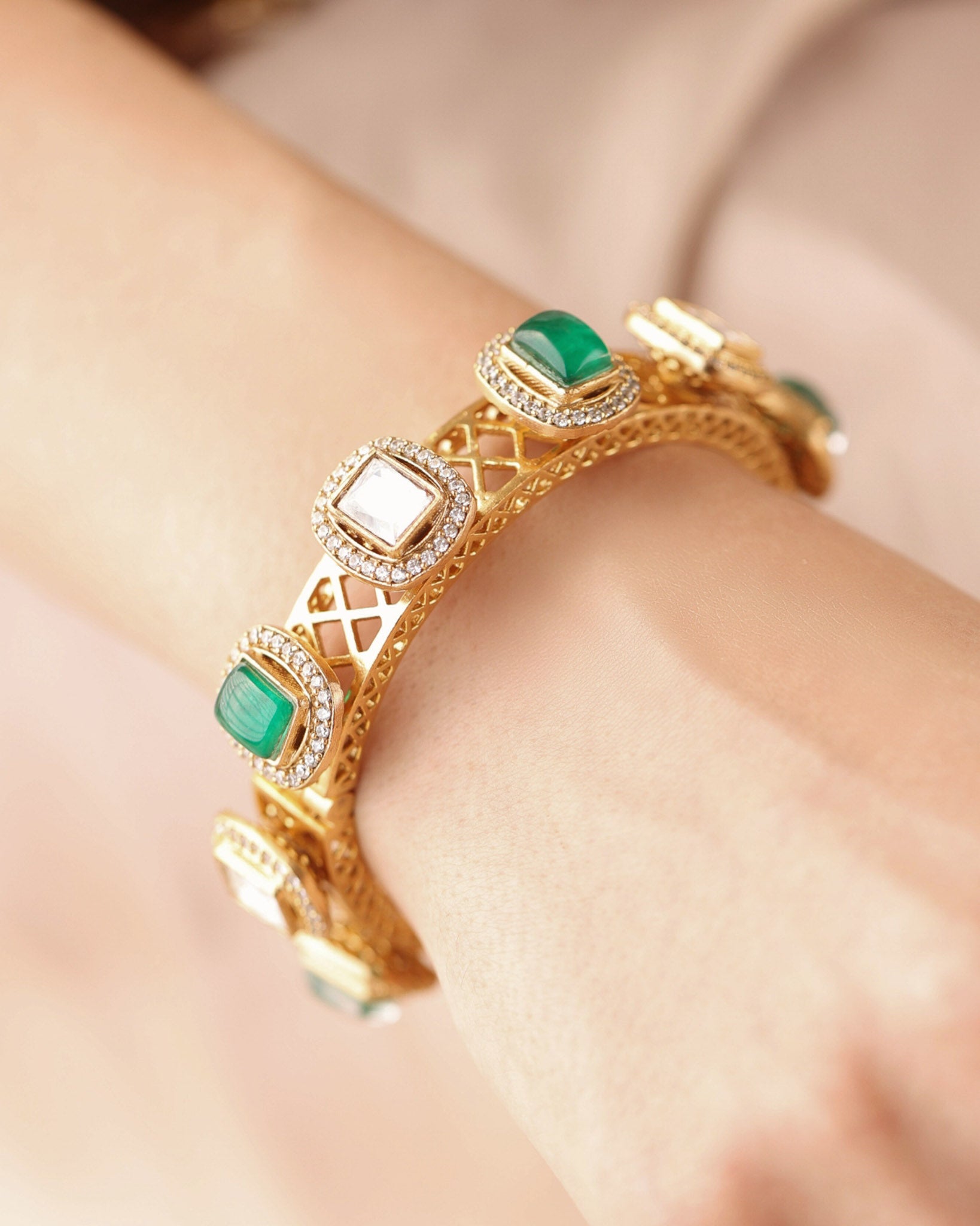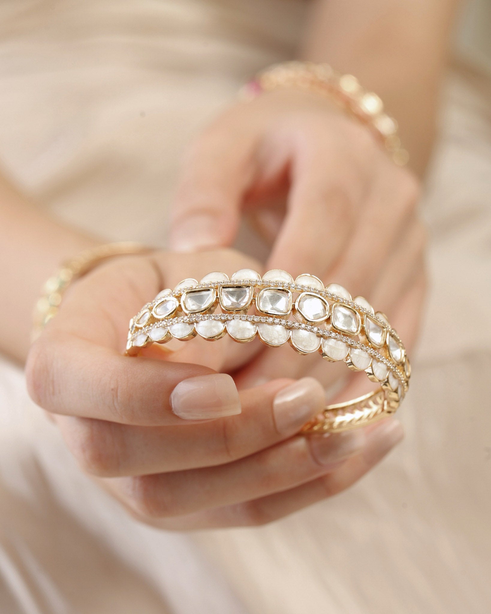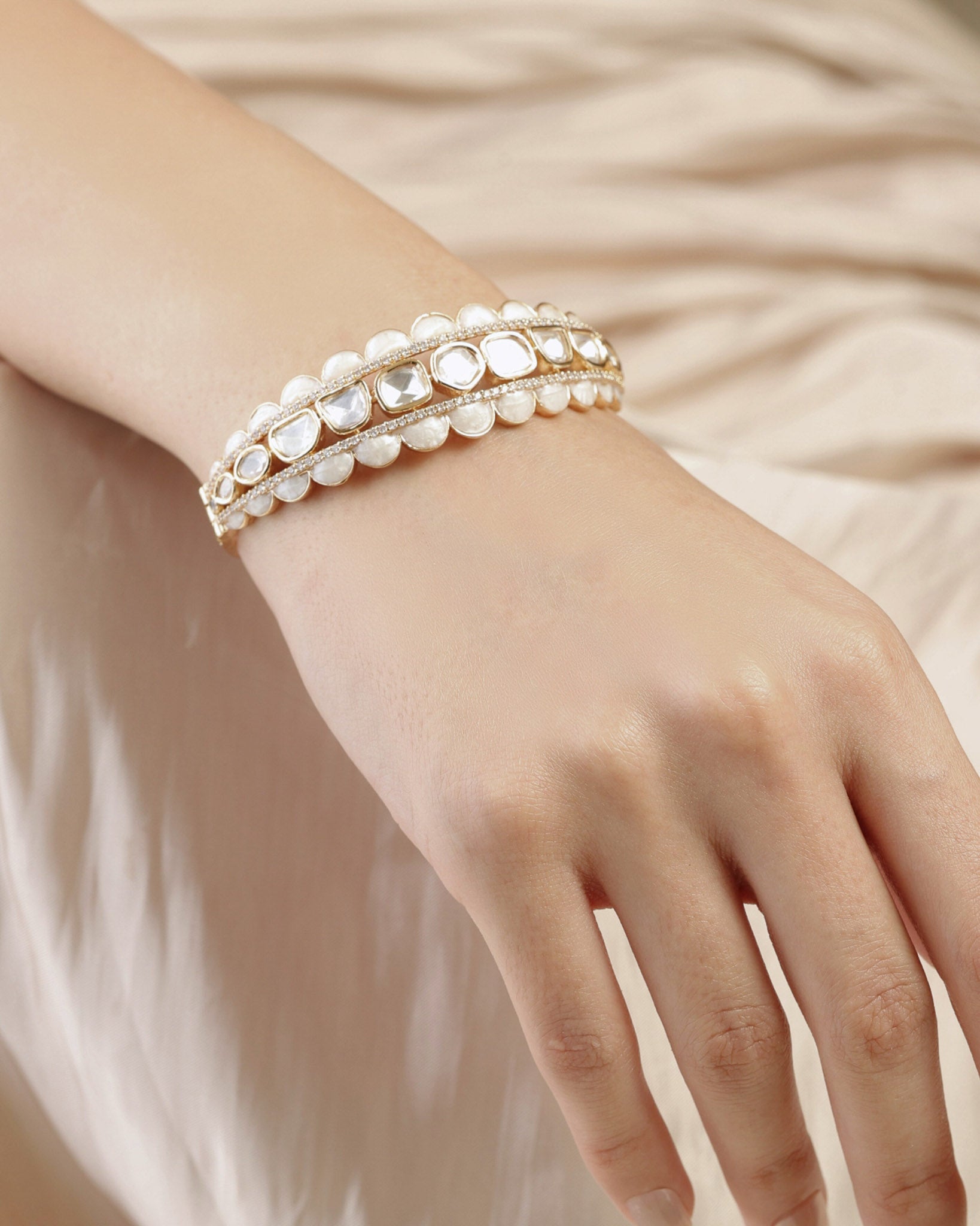 (5.0)Polki & Pearl Drops Bridal Necklace Set