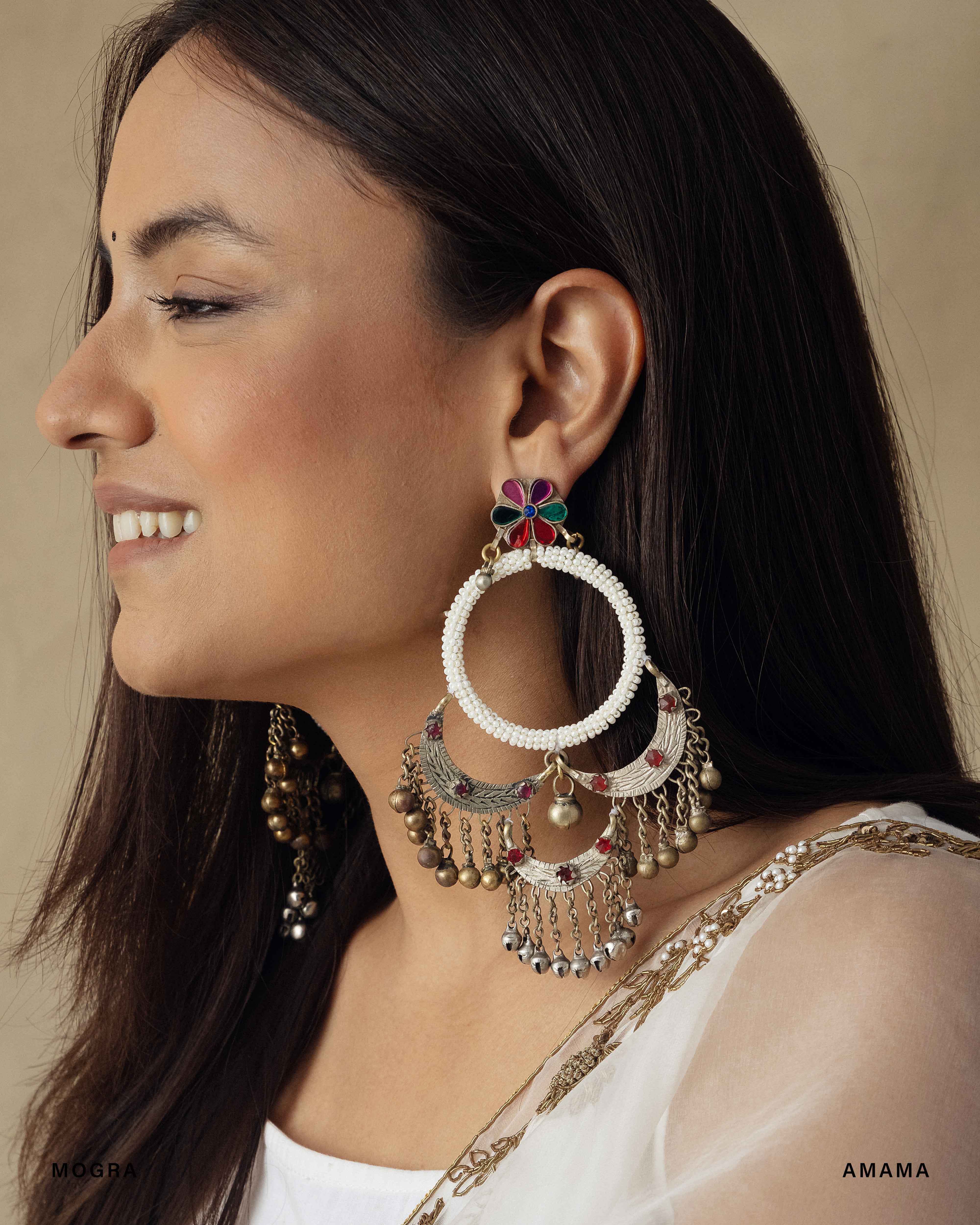 These unique pieces blend intricate Afghani designs with custom elements like pearls and beads, adding a fresh twist to classic oxidised jewels.