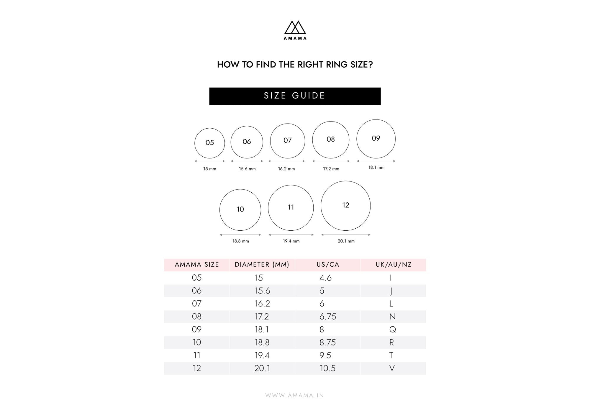 Explore our size guide to ensure a comfortable and flattering fit for all our AMAMA jewellery and accessories.