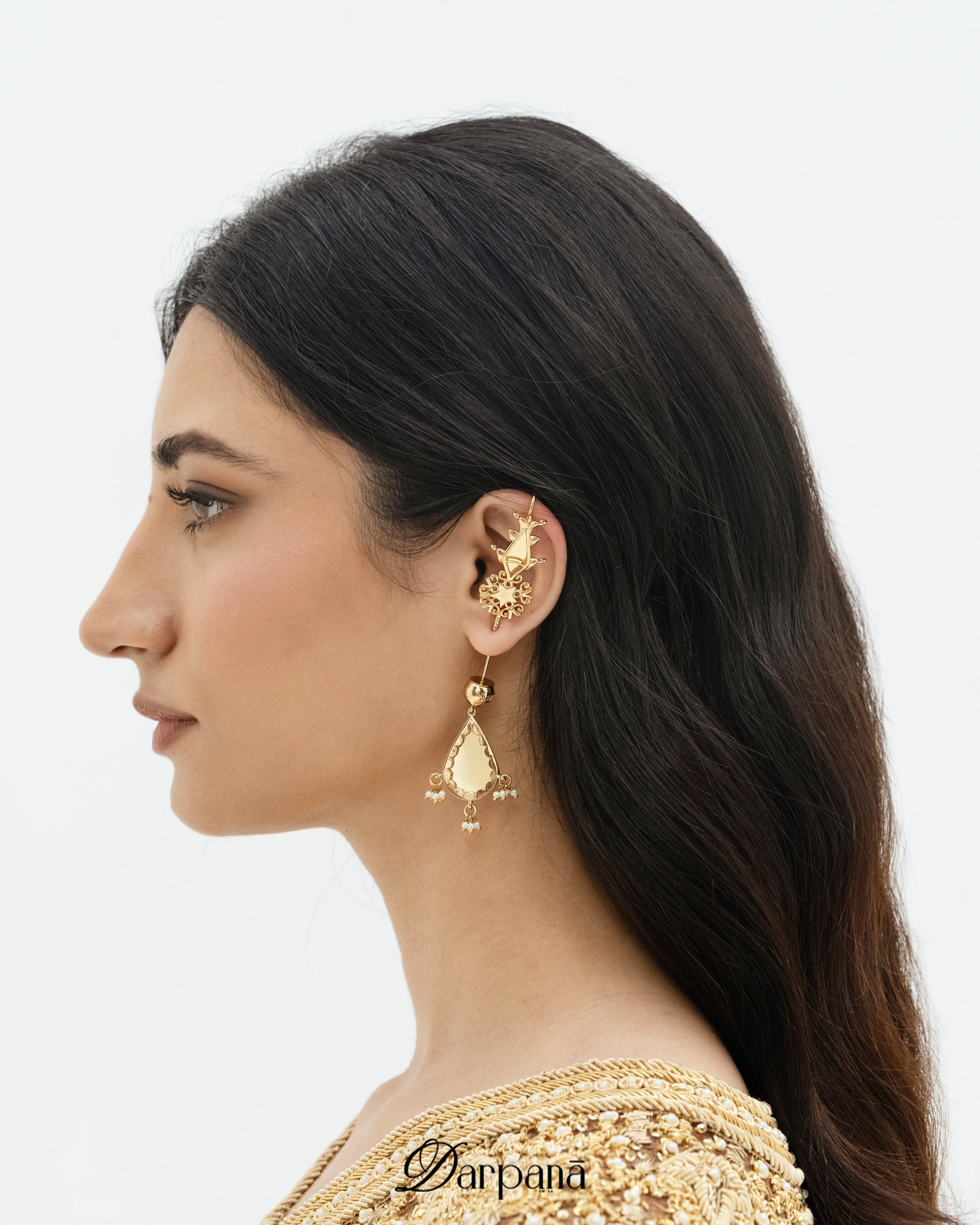 Rooted in the glimmer of celebration and the spirit of tradition, the collection reimagined the legacy of mirror work in jewellery. It brings together the intricate artistry of pearl bunches, peepal pattiyan clusters and folkloric motifs like birds, fish and sun-moon.