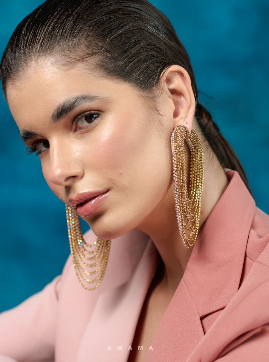 The Infinity Fall Danglers renders a unique look with these dangling studded crystals, available in Champagne Ombre shade that could be carried with utmost convenience. These danglers enumerate a dazzling and chic look that you must adorn for your every festive as well as a celebratory occasion!