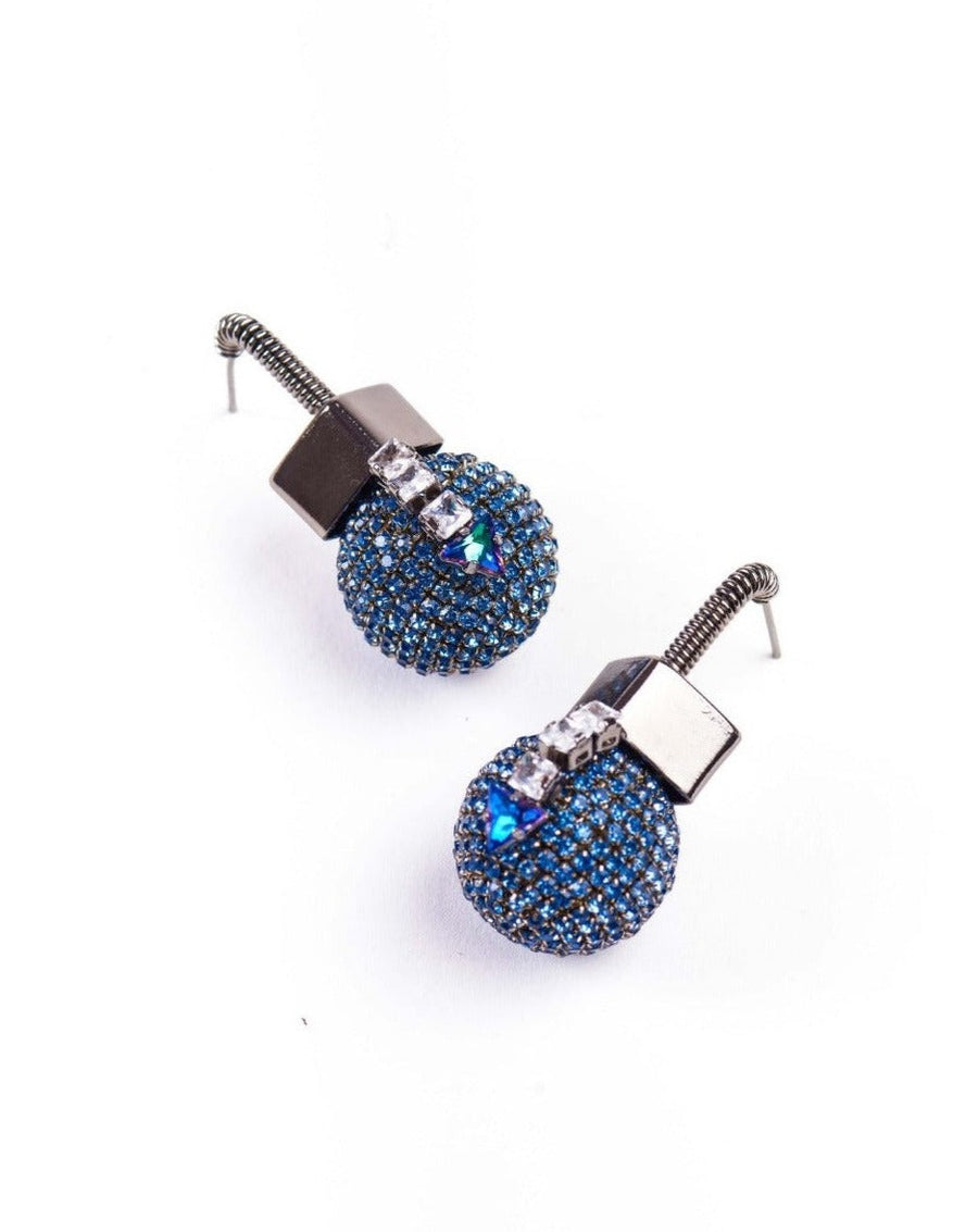 Intricately designed, the Orb Lock Earrings are handcrafted with impeccable perfection, ensemble the lustrous yet glittery look over the spherical modulation in cerulean blue shade. This majestic creation is the ideal choice for dressing up for any occasion. Adding a glistening touch to their lustrous look, you would cherish these for years to come.