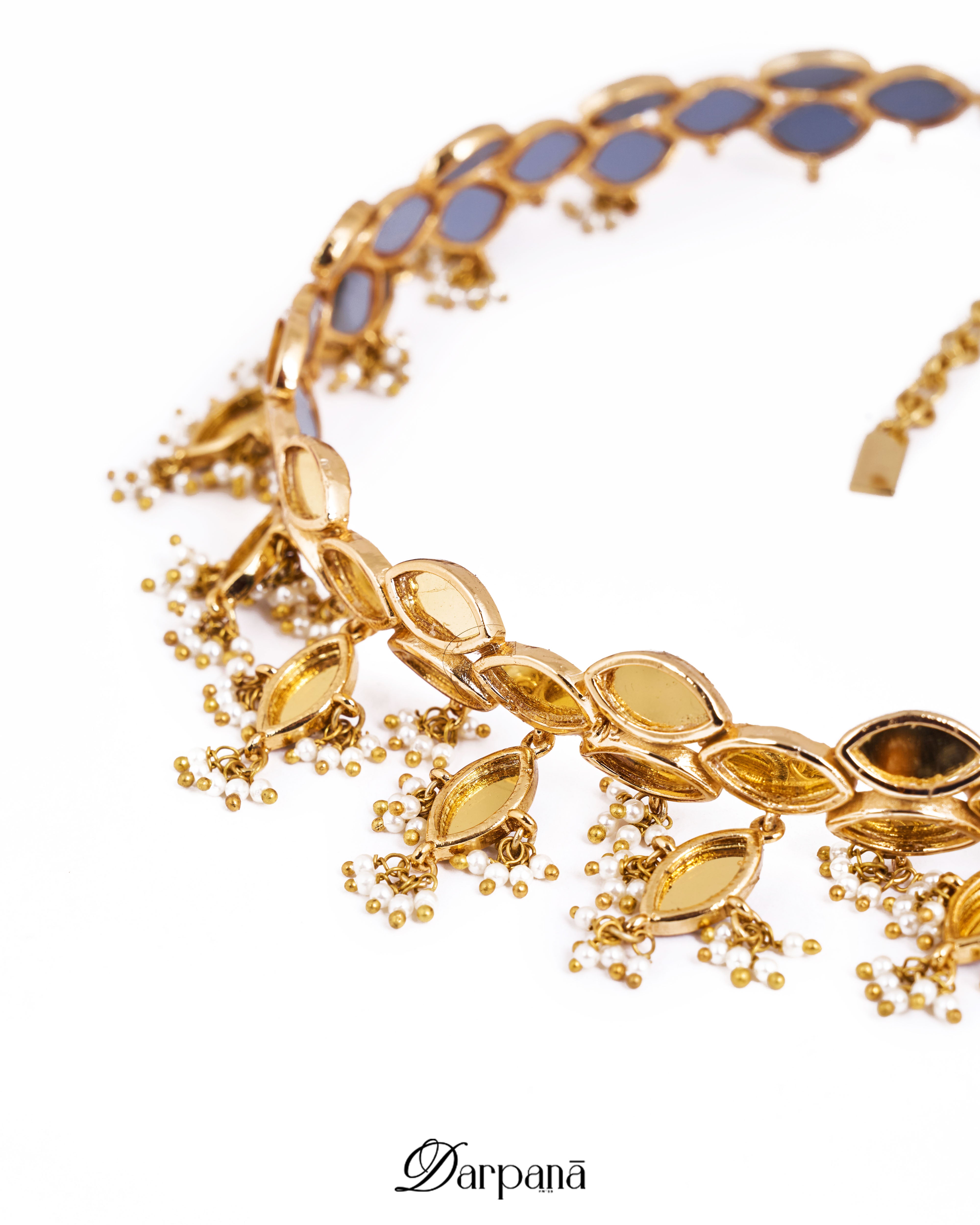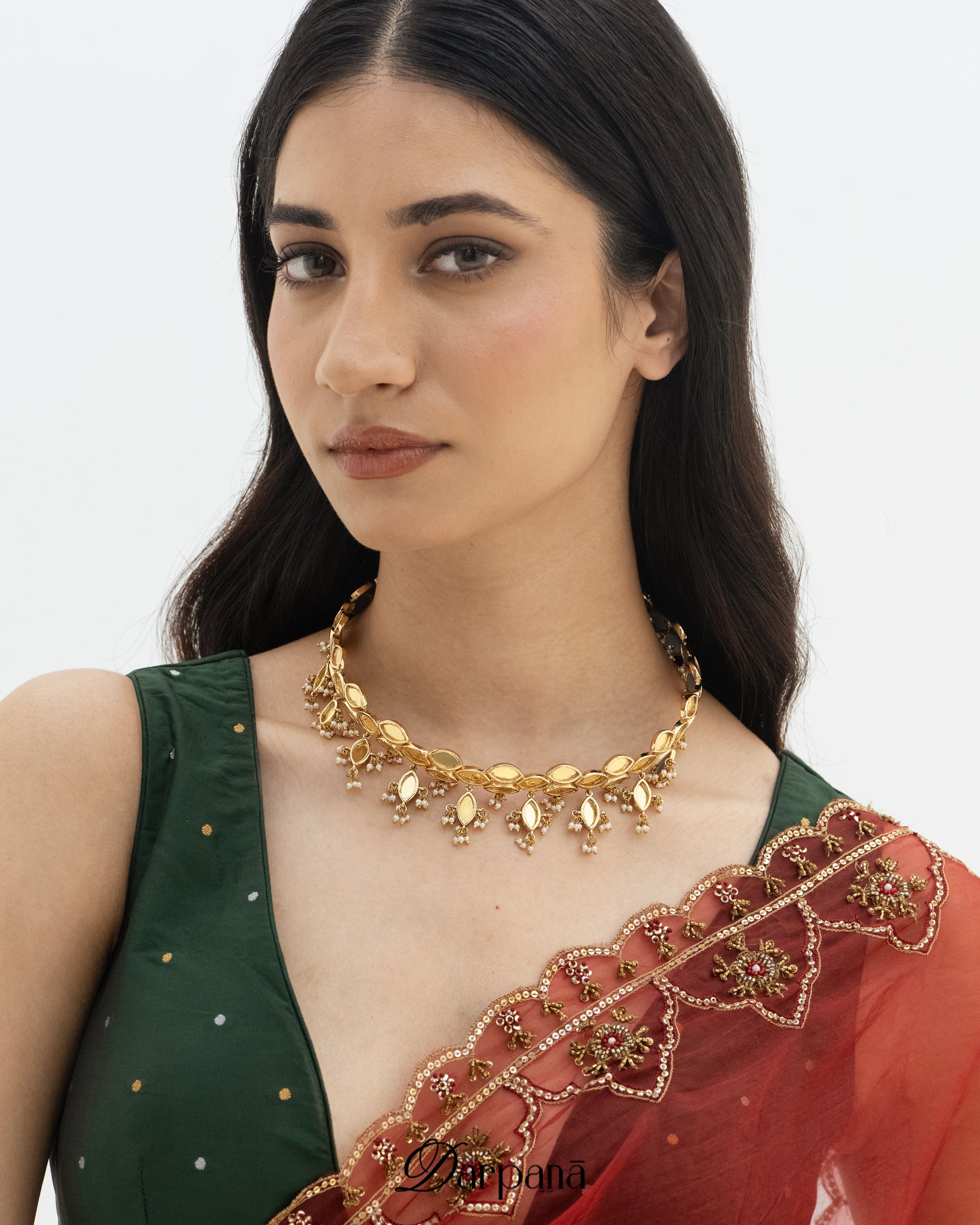 Rooted in the glimmer of celebration and the spirit of tradition, the collection reimagined the legacy of mirror work in jewellery. It brings together the intricate artistry of pearl bunches, peepal pattiyan clusters and folkloric motifs like birds, fish and sun-moon.