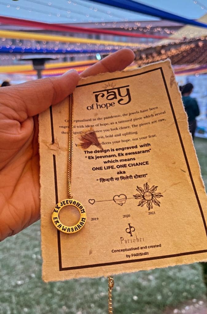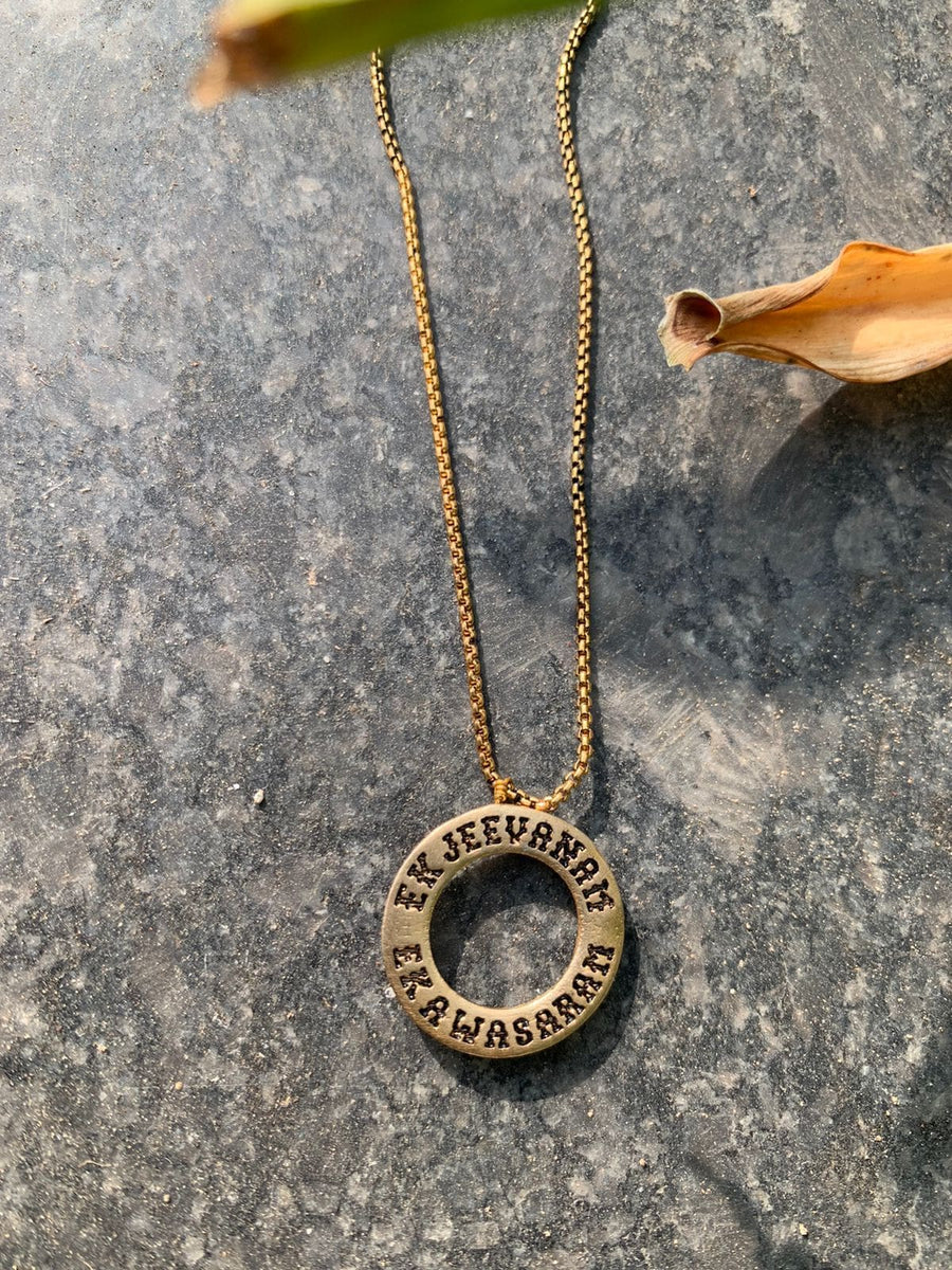 It is engraved with EK JEEVNAM, EK AWASARAM meaning ONE LIFE, ONE CHANCE.ZINDAGI NA MILEGI DOBARA