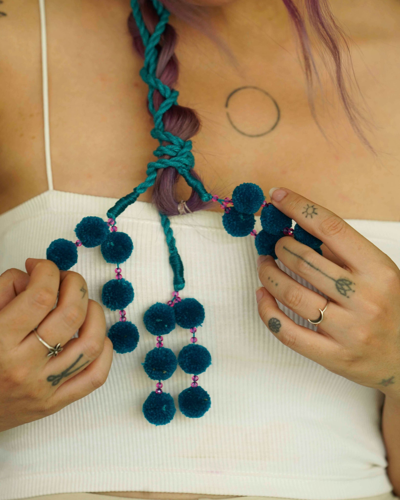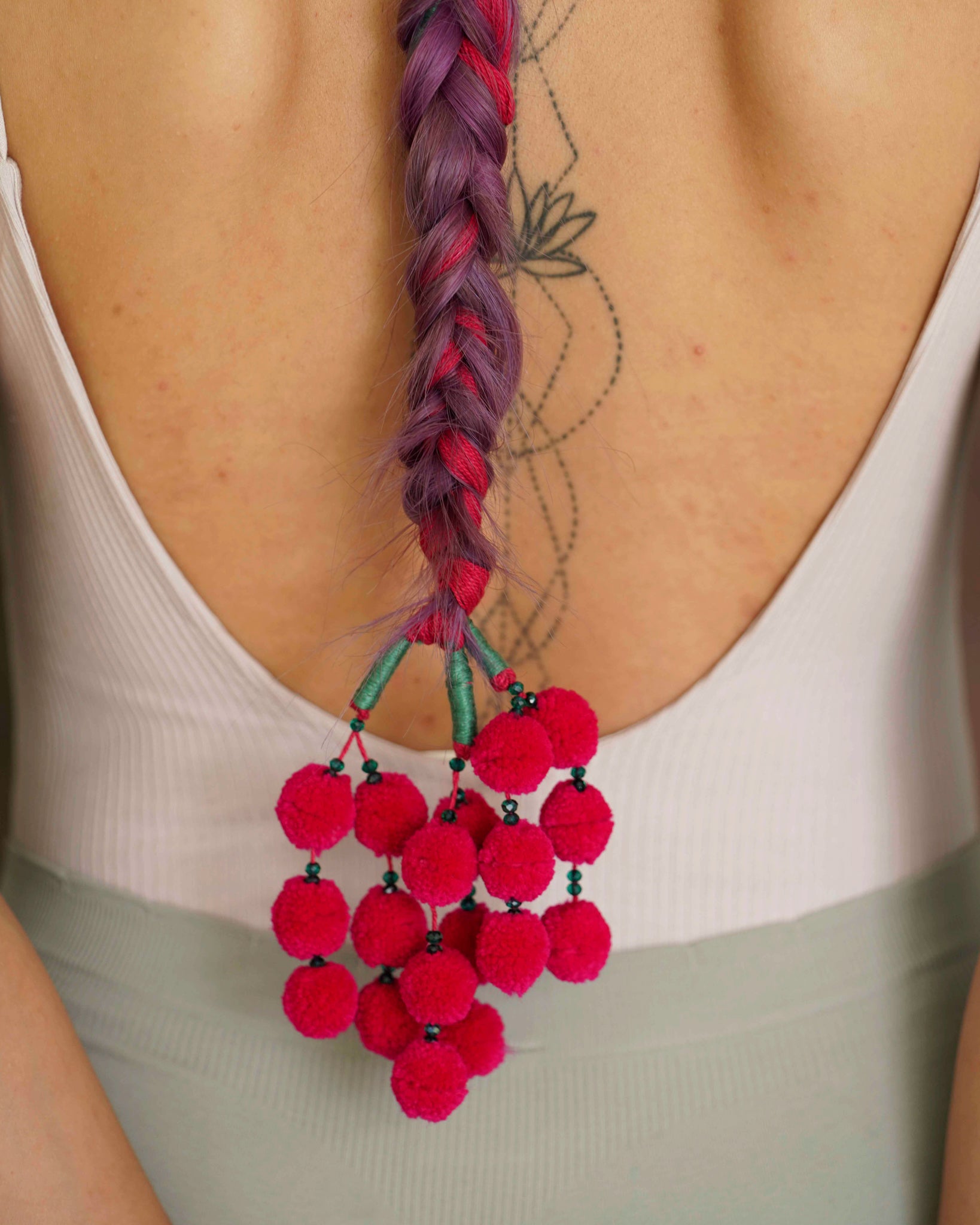 Perfectly round handcrafted cherry sized pom poms stringed together for that cute look. Pair it with your western or ethnic outfits and play around.